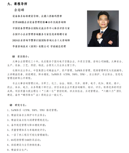 TPM設備管理、設備維護、自主保養(yǎng)、自主改善等相關咨詢